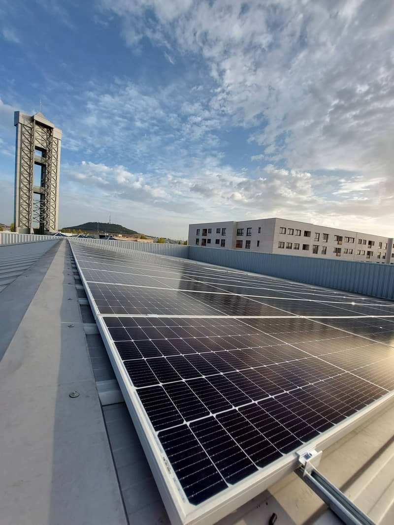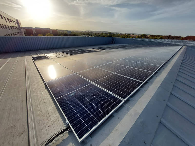 Por eso hemos optado por utilizar fuentes de energía limpia instalando placas fotovoltaicas en la sede central de Valladolid. Se trata de una instalación de 94 paneles fotovoltaicos y con una potencia instalada de 42,9 kWp, lo que permitirá generar 51.788 kWh al año, que evitará la emisión de 18,50 toneladas de CO2 contribuyendo así a reducir los gases de efecto invernadero.