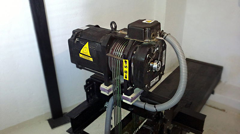 Sistema de rescate eléctrico mediante SAI para garantizar la evacuación de las personas encerradas en cabina ante una pérdida de tensión en el edificio.