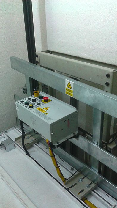 Sistema de rescate eléctrico mediante SAI para garantizar la evacuación de las personas encerradas en cabina ante una pérdida de tensión en el edificio.